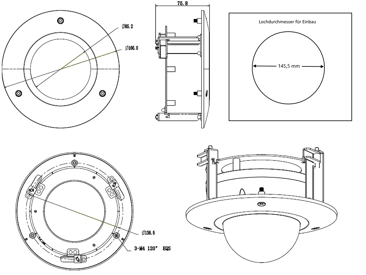 • für Deckeneinbau von LUNA Domekameras
