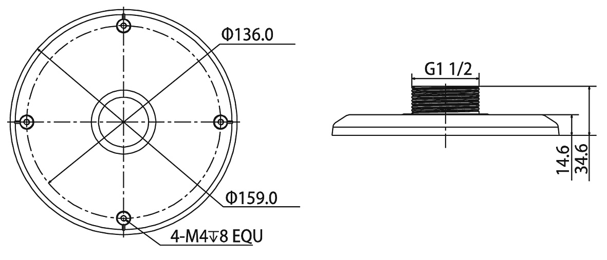 Adapter für Domekameras zur Verbindung von Domekameras an Wand- oder Deckenhalter mit Standard-Gewinde (NPT 1 1/2").