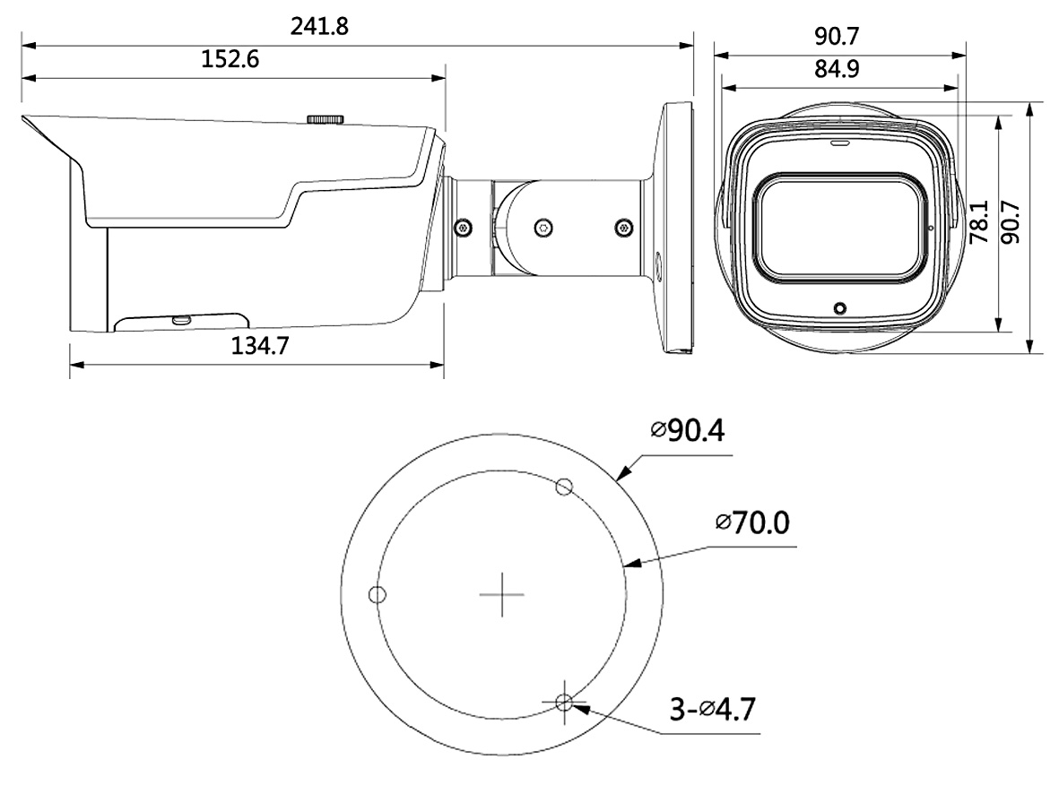 - 241,8 x 90,7 x 90,7 mm (B x H x T)