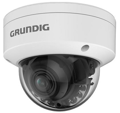 Die GRUNDIG GD-CI-AR4634V ist ein 4 Megapixel Netzwerk-Domekamera (IP). Das schwarz/weiße Gehäuse ist wetter- und vandalismusgeschützt (IP67/IK10).
