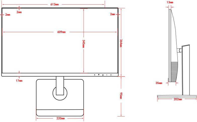 615 x 360 x 35 mm (B x H x T)
