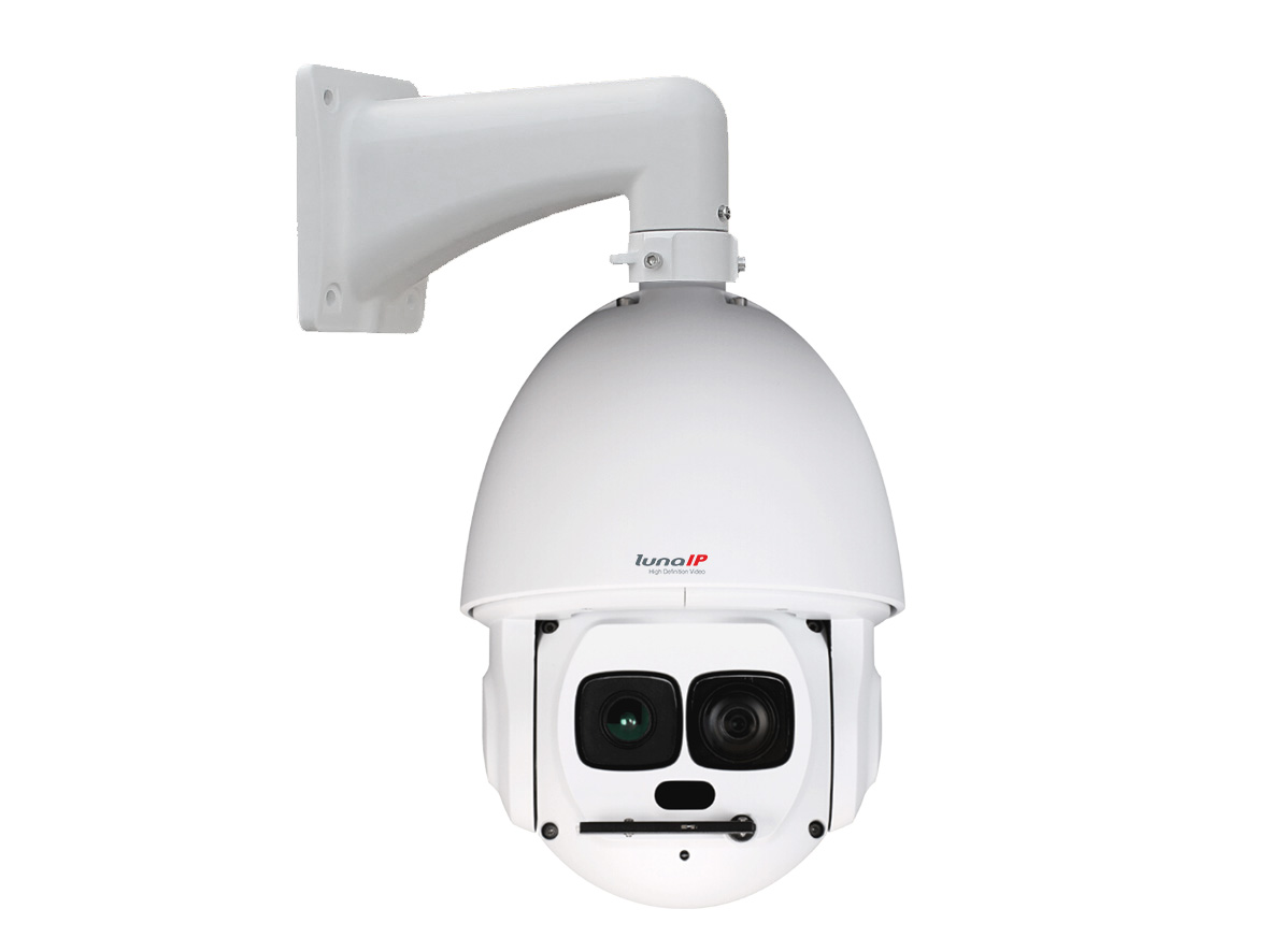 Die LUNA SL5203 ist eine Highspeed-IP Domekamera mit 45x optischem Zoom (f=3,95-177,7 mm) und Laser-IR-Strahler mit einer Reichweite bis zu 550 m. Eine Besonderheit der Kamera ist es, dass sie auch während eines Zoomvorganges immer fokussiert bleibt (PFA-Technologie). Die Kamera ist wettergeschützt (IP67, Scheibenwischer), und für einen Temperatureinsatzbereich von -40 °C bis +60 °C ausgelegt. Der 1/2,8" CMOS liefert Bilder in FullHD (1920 x 1080 px). Der mechanische IR-Cut Filter ermöglicht den Tag/Nacht Einsatz, auch bei schlechten Lichtverhältnissen. Über den integrierten MicroSD Kartenslot kann eine Datenaufzeichnung direkt an der Kamera erfolgen. Zahlreiche weitere Funktionen wie Triplestream (H.264/H-265+), Audio, Videoanalysefunktionen, Autotracking, Heatmap, Privatzonenmaskierung und 7xDI/2xDO erweitern das Einsatzgebiet dieser Kamera. Ein Netzteil, ZU1544 Wandhalter, Software und Montagezubehör befinden sich im Lieferumfang.
