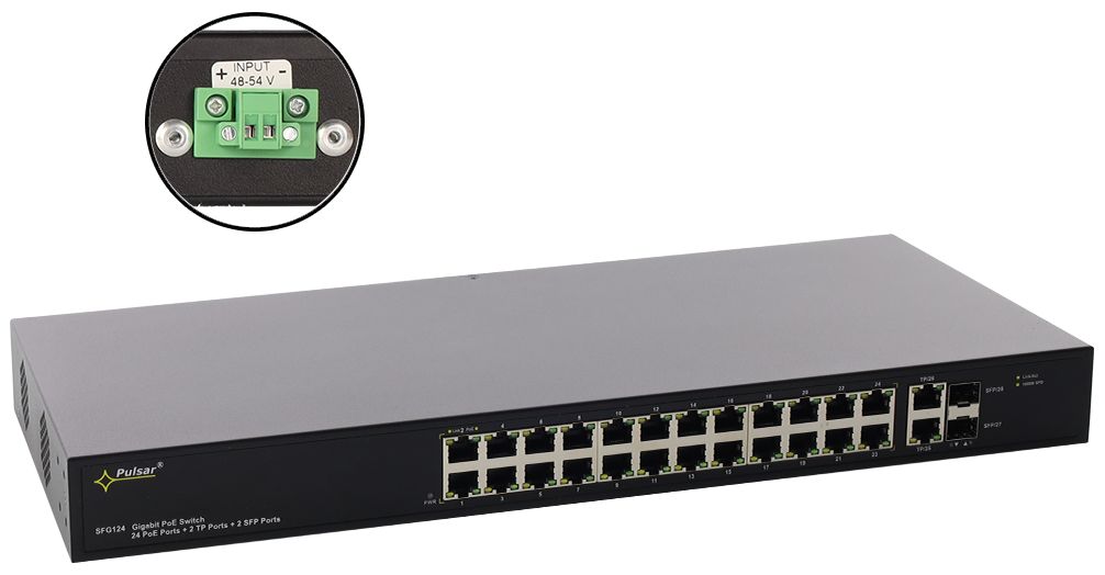 - Highspeed-Switch mit 24x PoE/PoE+