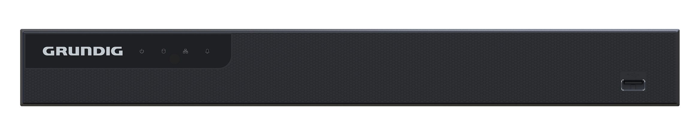 Die Videobilder können auf bis zu zwei internen SATA HDD (optional) gespeichert werden. Das Menü des Geräts kann komfortabel mit Maus bedient werden und über Monitorausgänge (HDMI, VGA) direkt am Gerät ausgegeben werden. Über die Netzwerkschnittstelle können via Webbrowser oder der GRUNDIG Management Software die Videobilder angezeigt, verwaltet und konfiguriert werden. Eine Maus zur direkten Bedienung des Gerätes ist im Lieferumfang enthalten.
