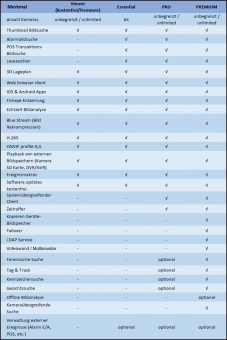 unlimitierte Anzahl von Kamerakanälen, Bildintervallsuche, Ereignis-Makros,
