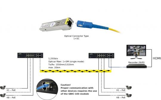 Für eine sichere Übertragung ist als Gegenstelle das SFP-Modul GBIC-103 zu verwenden.