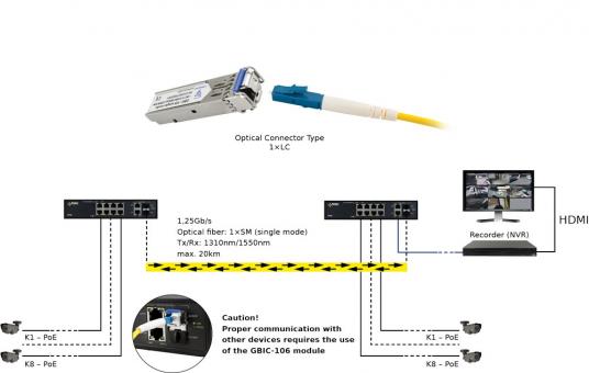 Für eine sichere Übertragung ist als Gegenstelle das SFP-Modul GBIC-106 zu verwenden.