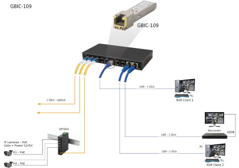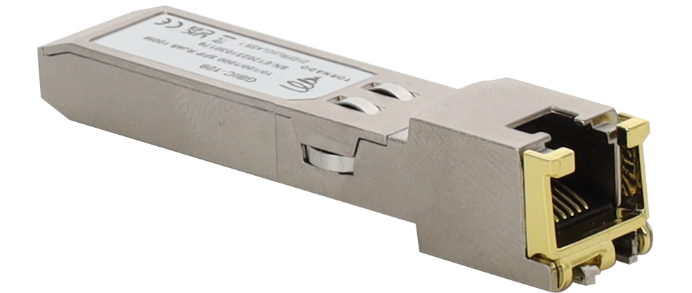 Das SFP-Modul GBIC-109 macht aus einem Glasfaserport einen herkömmlichen Netzwerkanschluss (RJ45). Es ist ausgelegt für die Datenübertragung über Cat. 5e (oder höher) über eine Entfernung von bis zu 100 m. Das Gerät ist mit einer Funktion zurautomatischen Aushandlung der Verbindungsgeschwindigkeit ausgestattet, die den Betrieb mit Geschwindigkeiten von 10/100/1000 Mbit/s ermöglicht.