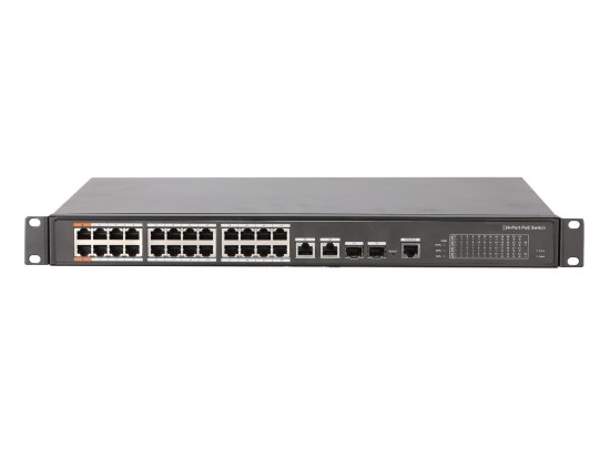 24x PoE 10/100 MBit/s; 2 x 10/100/1000 Base-T (Combo Port), 2 x 1000 Base-X (Combo Port)