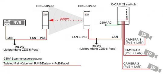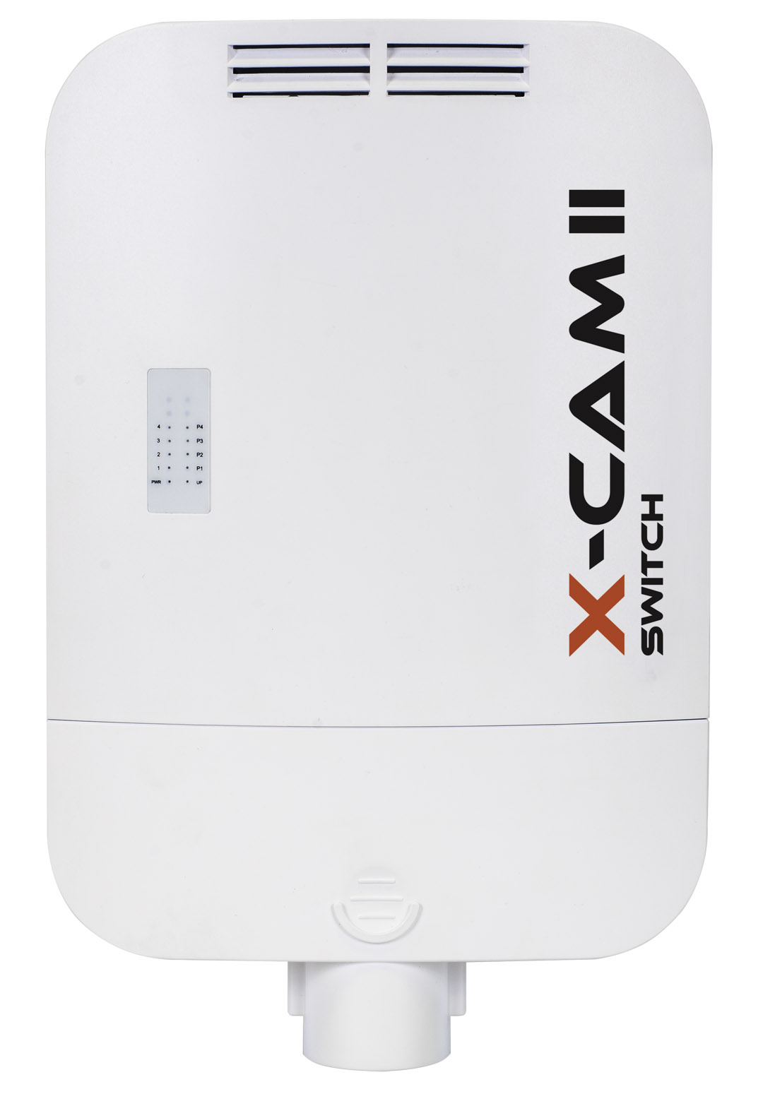 Der X-CAMswitch II 4F ist ein wettergeschützter Switch mit Glasfaser UPlink. Es können bis zu vier IP-Kameras angeschlossen und durch PoE (bis 30 W je Port) über die Netzwerkleitung mit Spannung versorgt werden. Der "X-CAMswitch II" ist für die Wand- oder Mastmontage (Mastdurchmesser 40-63 mm) vorbereitet. Dadurch ermöglicht der wettergeschützte (IP65) Switch flexible Netzwerklösungen auch im Außenbereich.