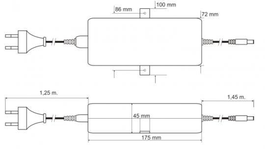 175 x 72 x 45 mm / Kabellänge DC 1,15 m / AC 1,45 m