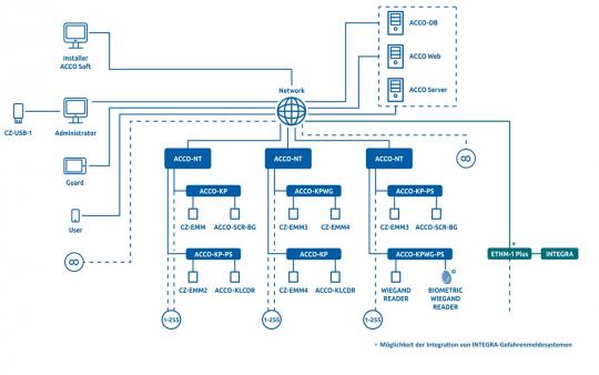 ACCO-Web ist ausgelegt für standortunabhängige, vernetzte Zutrittskontrollsysteme für bis zu 65.000 Benutzer und beliebig viele Zutrittspunkte an beliebig vielen Standorten. Zusätzliche Lizenzkosten werden nicht erhoben.