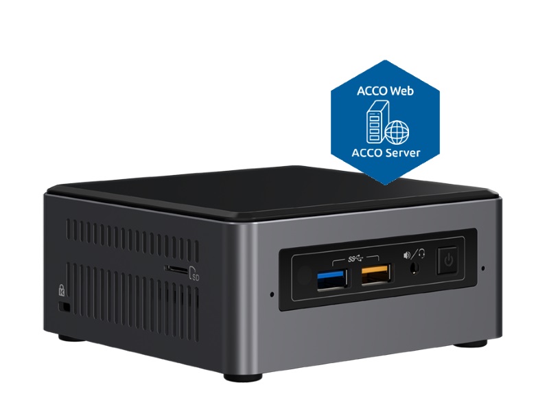 Der ACCO NET NUC-Server ist bereits mit Debian und ACCO-Web vorinstalliert und ist mit minimalem Zeitaufwand einsatzbereit.